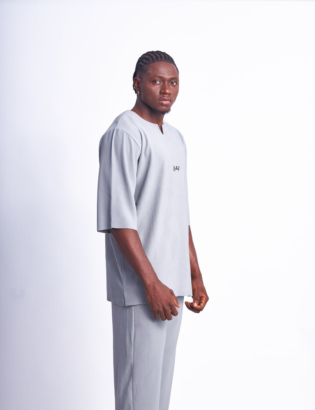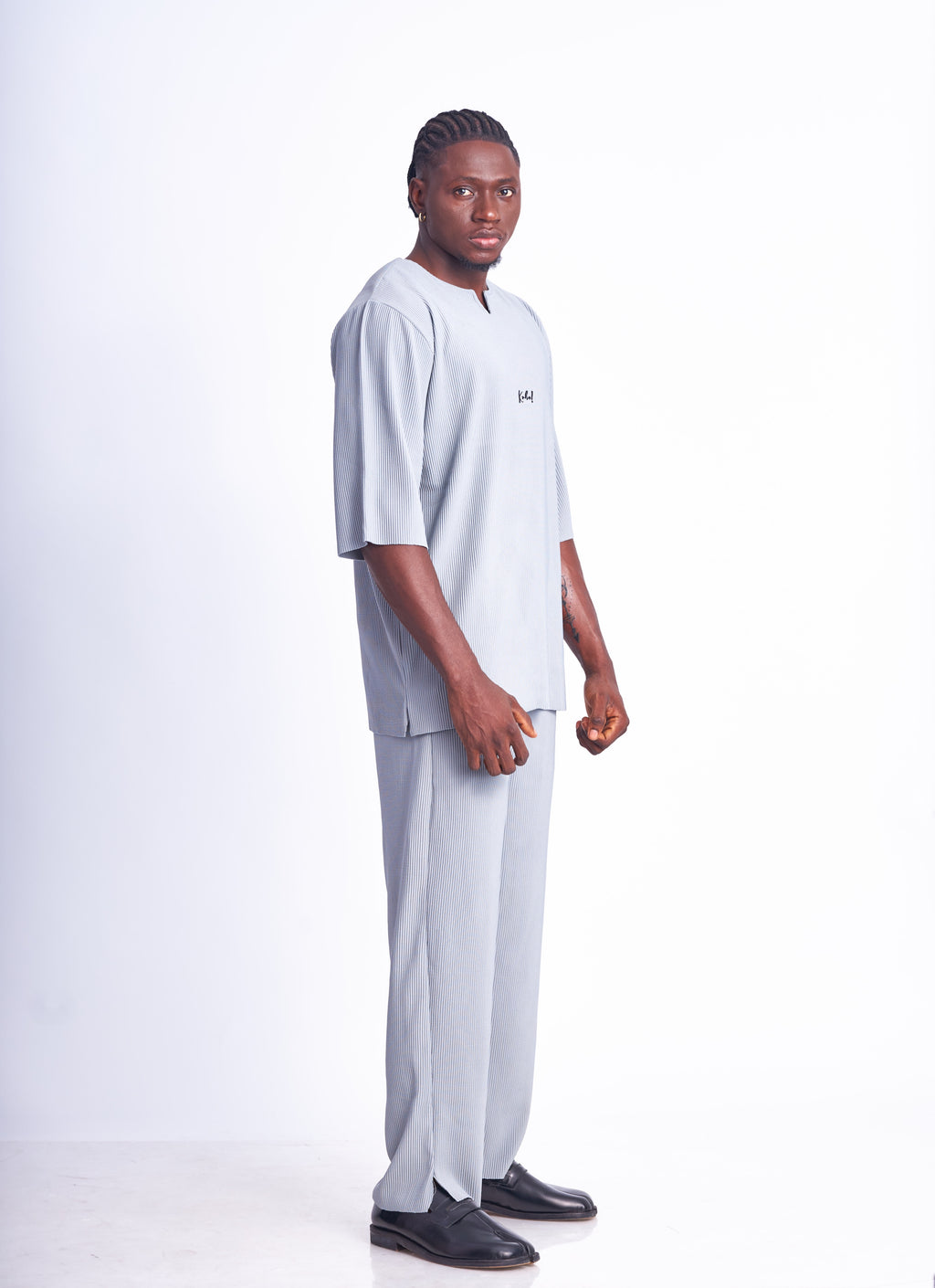 Built for ease, built for presence. The Abuja Boys Loungewear Set takes the clean senator-inspired silhouette and strips it down to everyday comfort. Soft ribbed fabric drapes easy; the relaxed cut moves from couch to city run without missing a beat. Choose deep, confident Federal Navy or cool neutral Concrete Ash—both carry quiet Naija authority.